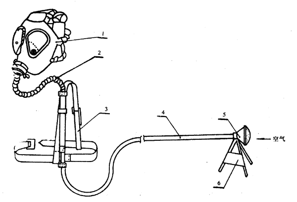 1―面罩;2―連接導管;3―固定帶;4―軟管;5―過濾器;6―支架