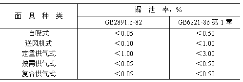 開放型面罩的漏泄率按照GB6221-86第1章試驗,應小于1.0%。