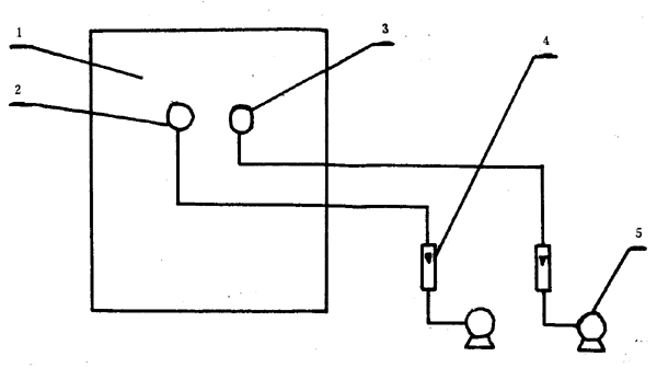 1―發塵柜;2―對照采樣;3―模擬頭型;4―流量計;5―真空泵
