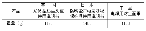 由表4可知我國此類呼吸器重量優于其它國家。但由于本產品類型多,重量差異大,故本標準不做具體規定,由制造廠與用戶依據用途協商而定,但必須遵循標準總原則。