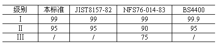 如前所述防護率是檢定呼吸器防護性的重要指標。參照國際先進國家的標準(見表2),指標必須與國際先進水平相當,故本標準防護率Ⅰ級、Ⅱ級均采用與日本上當的指標。