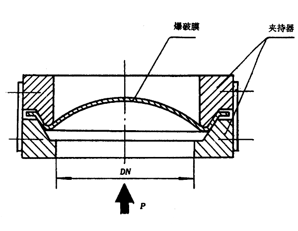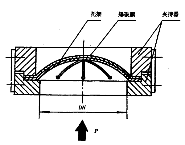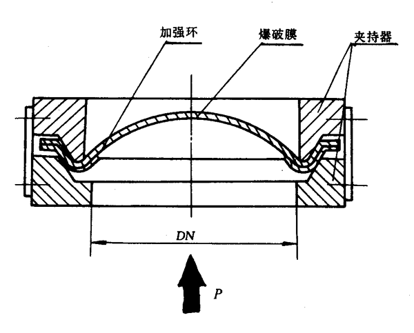 其中正拱普通型、正拱帶托架型、正拱帶加強環型、正拱帶雙加強環型、正拱帶加強環和托架型爆破片的系統最高工作壓力不超過爆破壓力的70%。當工作壓力為脈動壓力時,不超過爆破壓力的60%。正拱帶托架型和正拱帶加強環和托架型爆破片能承受一定的背壓差。正拱刻槽型爆破片系統最高工作壓力不超過爆破壓力的85%,并且爆破后無碎片。