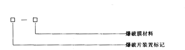 爆破片裝置標記項目按GB12353中4.3標記方法標記。其中包括型式代號、爆破片組件結構特征代號、夾持器特征代號、公稱通徑、設計爆破壓力、爆破溫度、爆破膜材料項目按第3章代號標記。
