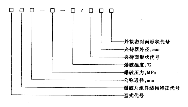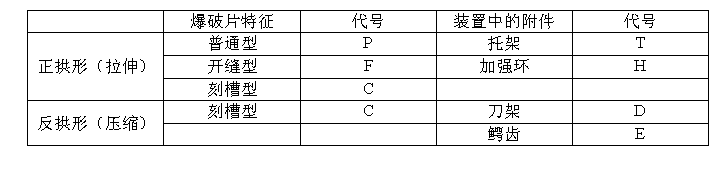 b) 爆破片組件結(jié)構(gòu)特征代號(hào)見(jiàn)表2。
