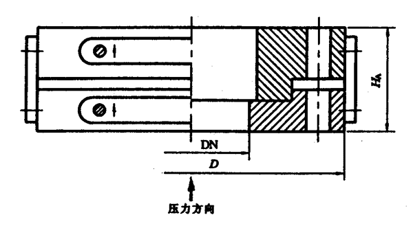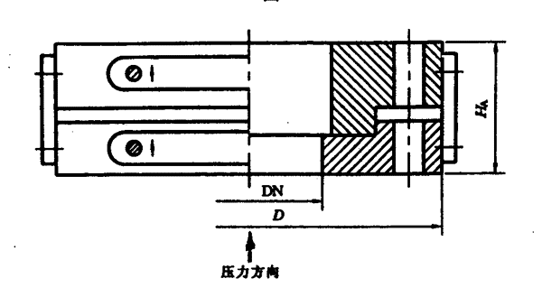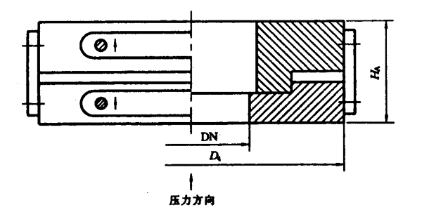 示例:正拱開(kāi)縫托架夾持面為錐面,夾持器端面密封凹凸面,夾持器外徑158mm,公稱通徑100mm,設(shè)計(jì)爆破壓力0.5MPa,爆破溫度120℃。