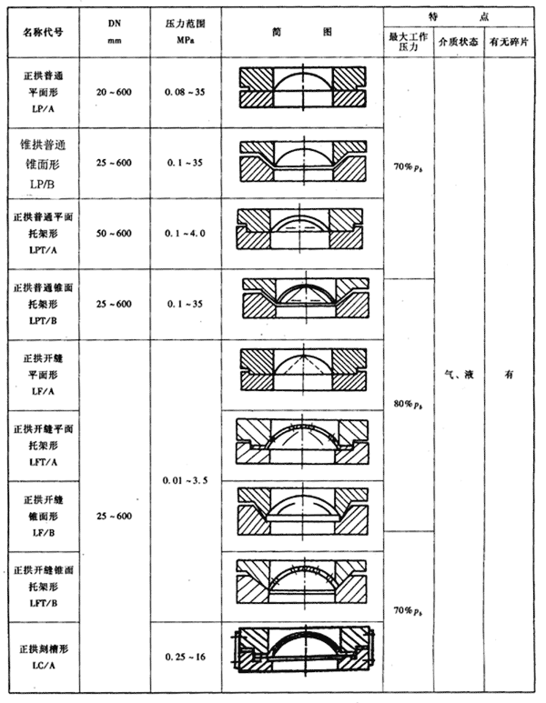 本標(biāo)準(zhǔn)適用于設(shè)計(jì)爆破壓力范圍為0.01~35MPa,公稱通徑為20~600mm拱形金屬爆破片裝置。