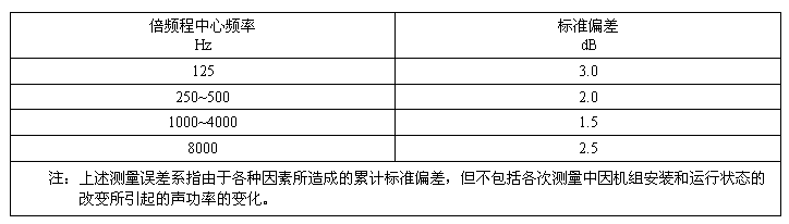 A計權聲功率級的標準偏差約為2dB。倍頻程聲功率級的標準偏差見表1。