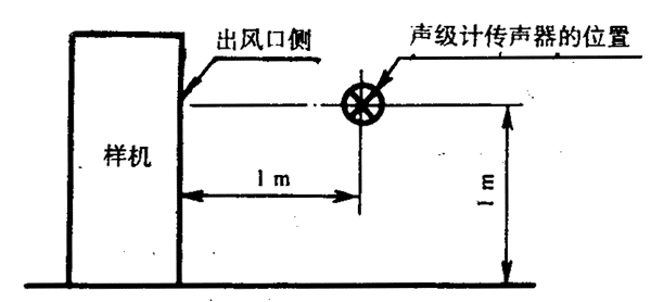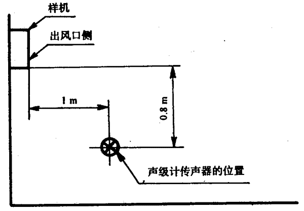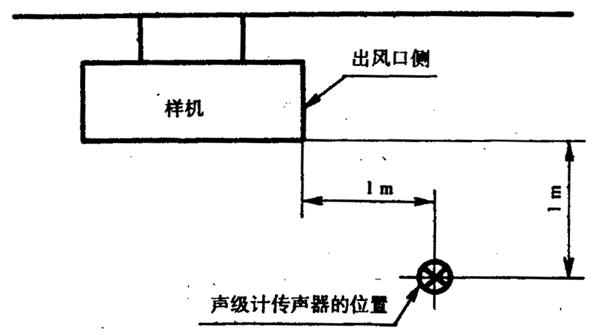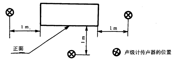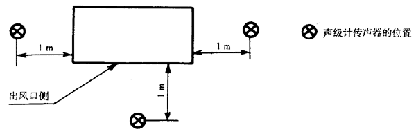 按8.3.3規定的1~4點的位置點,當機組高度不超過1m時,其測點高度為1m;當機組高度大于1m時,其測點高度為1.5m。對于大型機組,可按8.3.4的規定增加附加測點,其測點高度為1.5m。當某測點處于機組的出風口或冷卻風扇位置處,風速大于4級時,可在偏離風口45℃處進行測量。