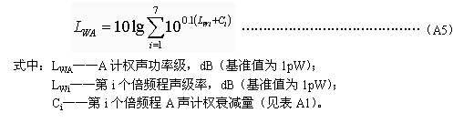 倍頻程聲功率級合成A計權聲功率級按式(A5)計算: