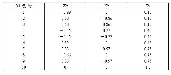 8.3.2 半球測量表面上共布置10個測點(見圖B1和表B1)。