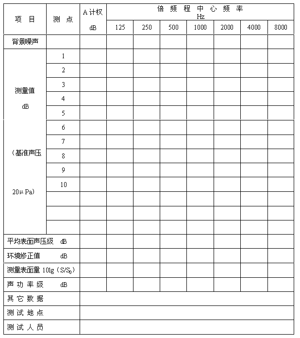 下列測量是按JB/T 4330—1999進行的。 基準聲功率:1pW
