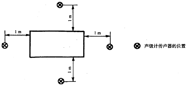 在機組正面和兩側面,距機組1m(見圖D8),其測點高度為機組高度加1m的總高的1/2處三個測點,并按式(4)進行平均。