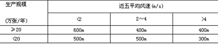 3.1制革廠衛(wèi)生防護距離,按其所在地區(qū)近五年的平均風速規(guī)定為: