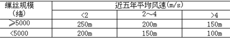 3.1繅絲廠的衛生防護距離,按其所在地區近五年平均風速規定為: