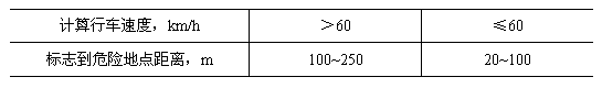 6.11.2.3設置在道路邊緣的警告標志到危險地點的距離,根據道路的計算行車速度,按表1選取。