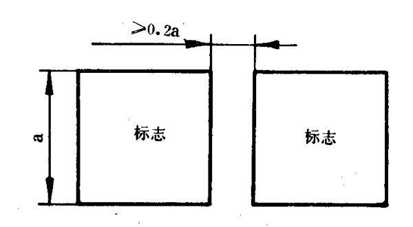 7.2.1兩個或更多的正方形消防安全標志一起設置時,各標志之間至少應留有標志公稱尺寸0.2倍的間隙,如圖8所示。
