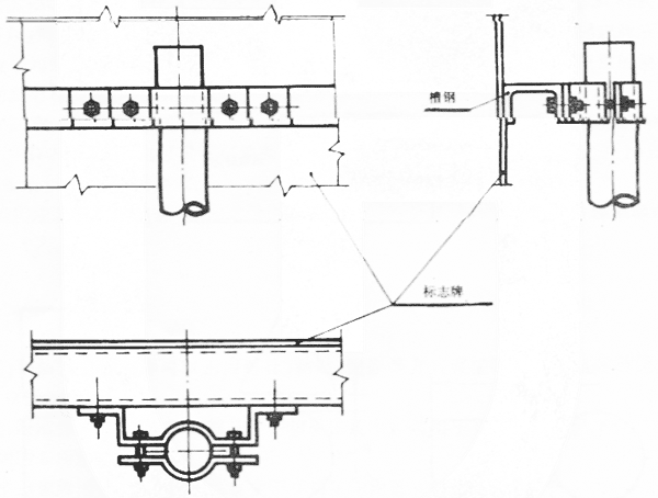 7.3.3柱式設置的消防安全標志牌應用螺栓、管箍等牢固地固定在標志桿上。 固定方法可參照圖12進行。