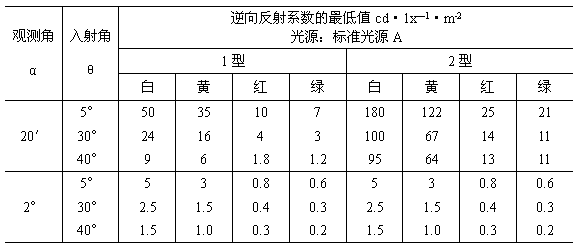 c.逆向反射標志的逆向反射系數小于最小反射系數的50%(參見附錄C中表C2);