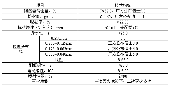 碳酸氫鈉干粉滅火劑主要性能應符合下表規定: