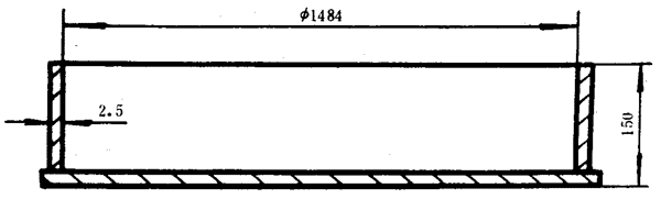 e. B類火鋼質油盤(見圖4):直徑1484mm,高150mm,壁厚2.5mm。