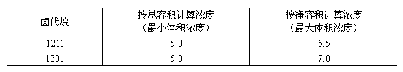 4.1.4.1 經常有人的被保護處所,其滅火劑使用體積濃度,對1211,不得大于5%;對1301,不得大于7%。