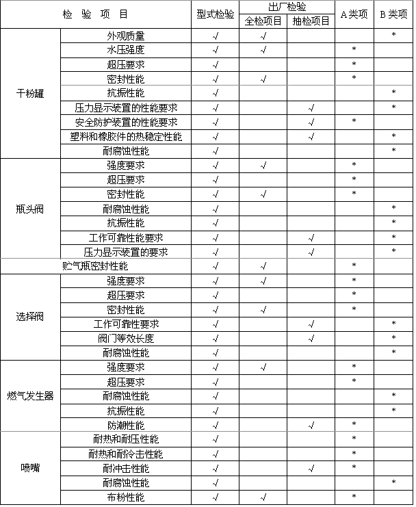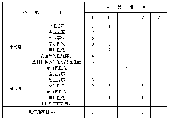 罐體及附件組合體應按7.1.1.1規定的方法進行水壓試驗,試驗壓力為干粉罐最大工作壓力的1.5倍,試驗時罐體不得有滲漏、宏觀變形等影響正常工作的缺陷。