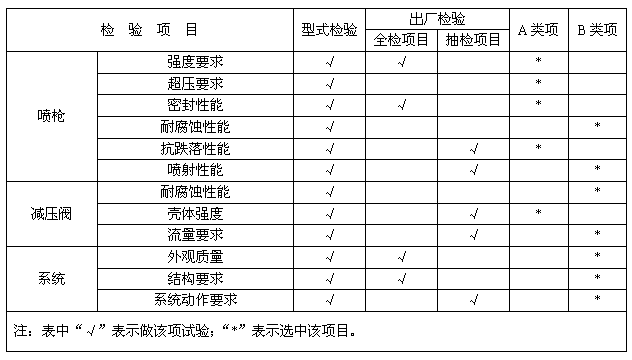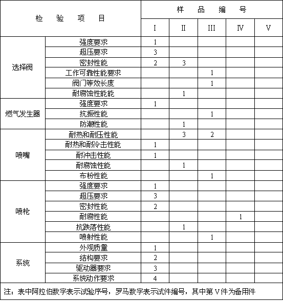 將系統各部件按使用說明組裝好,按規定灌裝滅火劑《貯壓式應充壓至工作壓力》。使之處于工作狀態。分別用自動、手動和機械應急操作三種啟動方式使系統動作,觀察干粉系統各部位的密封及各部件的動作情況和干粉噴灑的分布情況。記錄干粉罐充壓時間、有效噴射時間、噴射距離、干粉剩余率等。其結果均應滿足6.10.5要求。