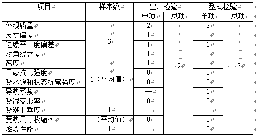 6.3本標(biāo)準(zhǔn)中所規(guī)定的外觀質(zhì)量、尺寸偏差、邊緣有平直度偏差、對(duì)角線之差、密度、干態(tài)抗彎強(qiáng)度、吸水飽和狀態(tài)抗彎強(qiáng)度、吸濕變形率、受熱尺寸收縮率為出廠檢驗(yàn)項(xiàng)目,必要時(shí)可按產(chǎn)品特點(diǎn)和預(yù)定用途或合同增加檢驗(yàn)項(xiàng)目。