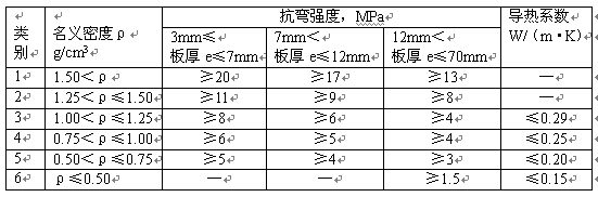 不燃性無(wú)機(jī)復(fù)合板按其密度分為6類,其類別和基本物理力學(xué)性能見表1。