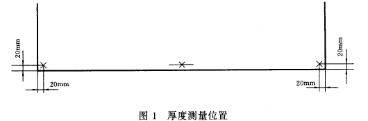 在板的任一邊,按圖1所示的測(cè)量位置,用游標(biāo)尺測(cè)量三個(gè)點(diǎn)的厚度,每次測(cè)量結(jié)果均應(yīng)滿足表3的要求。