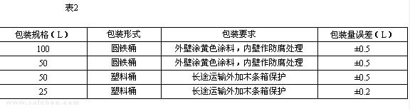 高倍數(shù)泡沫滅火劑用鐵桶或聚乙烯塑料桶包裝,包裝應(yīng)符合表2所列要求。