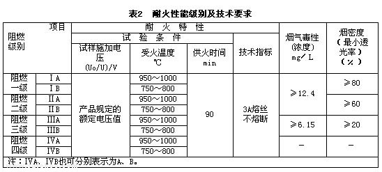 具有規定的耐火性能(包括耐火特性、材料發煙性、材料產煙毒性)的電纜。
