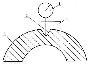 a) 外部磕傷、劃傷、凹坑和外部線腐蝕或面腐蝕深度可用下面兩種方法中的任一種方法進行測量:圖A.1 所示。卡板的型面曲率半徑與筒體外廓相吻合,千分表的針尖插入缺陷中測量其深度,針尖的楔角應小于等于30°,半徑應小于0.25mm。測量過程中要定期校核千分表的讀數,以消除由于針尖磨損造成的誤差。