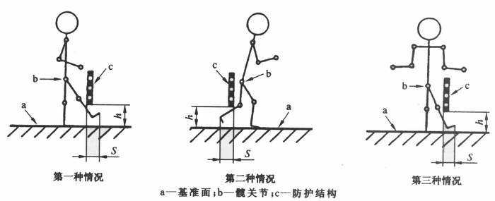 阻止自由進入的距離與防護結構的高度有關,并且用限制下肢自由運動的方法減小人員的風險。