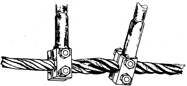 檢驗這個部位的鋼絲繩,只要使用單個夾鉗就夠了。因端部錨固系統(tǒng)或用銷軸適當?shù)卮┻^繩端尾部就能保證第二端不動。