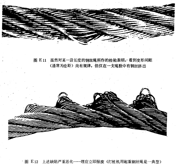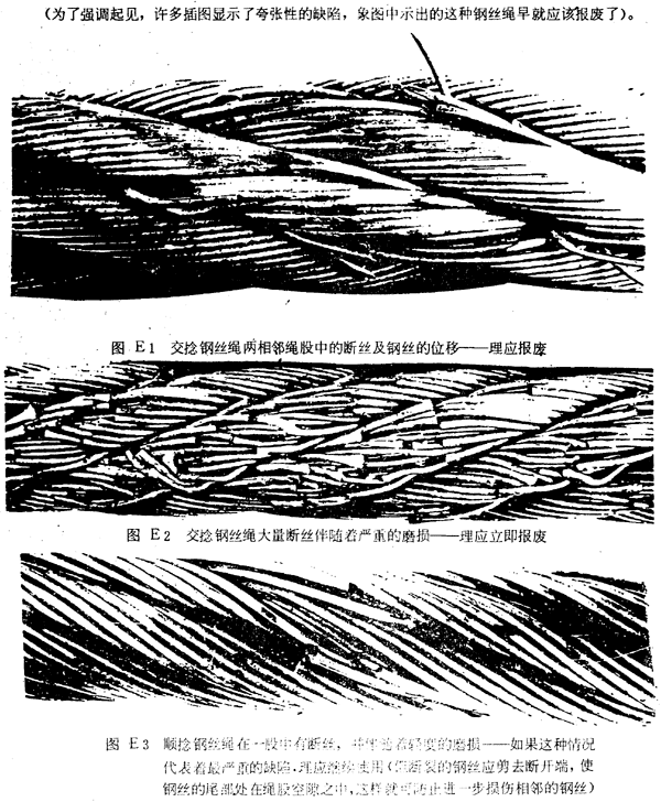 (為了強調(diào)起見,許多插圖顯示了夸張性的缺陷,象圖中示出的這種鋼絲繩早就應該報廢了)。
