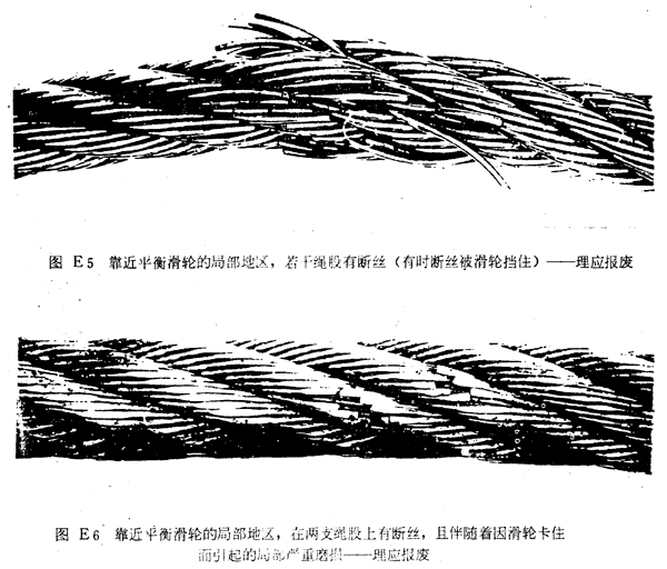 在所有情況下,檢驗人員應弄清鋼絲繩的損壞是否由機構(gòu)上的缺陷所造成,如果是這樣,應建議在換新鋼絲繩之前消除這缺陷。