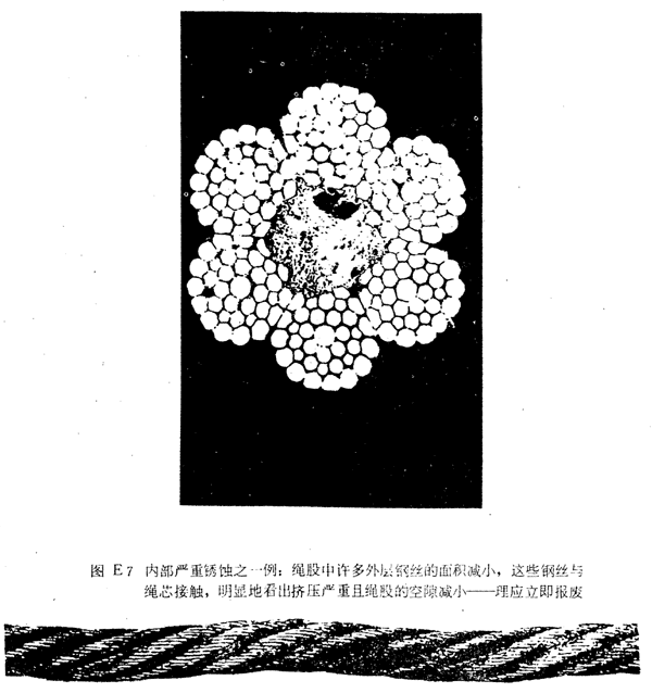 微小的損壞,特別是當所有各繩股中應力處于良好平衡時,用通常的檢驗方法可能是不明顯的。然而這種情況會引起鋼絲繩的強度大大降低。所以,有任何內(nèi)部細微損壞的跡象時,均應對鋼絲繩內(nèi)部進行檢驗予以查明(見附錄C)。一經(jīng)證實損壞,則該鋼絲繩就應報廢。