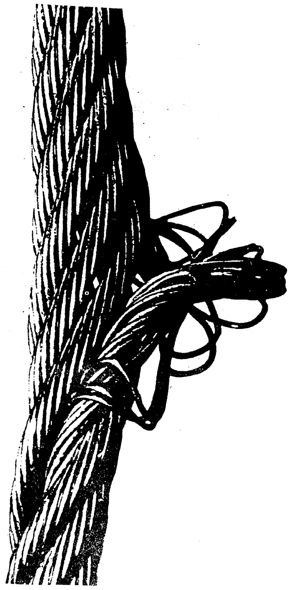 所有類型的成股鋼絲繩均能充分地松開以便對其內(nèi)部情況作評定。這對粗的鋼絲繩是有困難的。然而,起重機械上用的大多數(shù)鋼絲繩,只要張力為零時就能進行內(nèi)部檢驗。