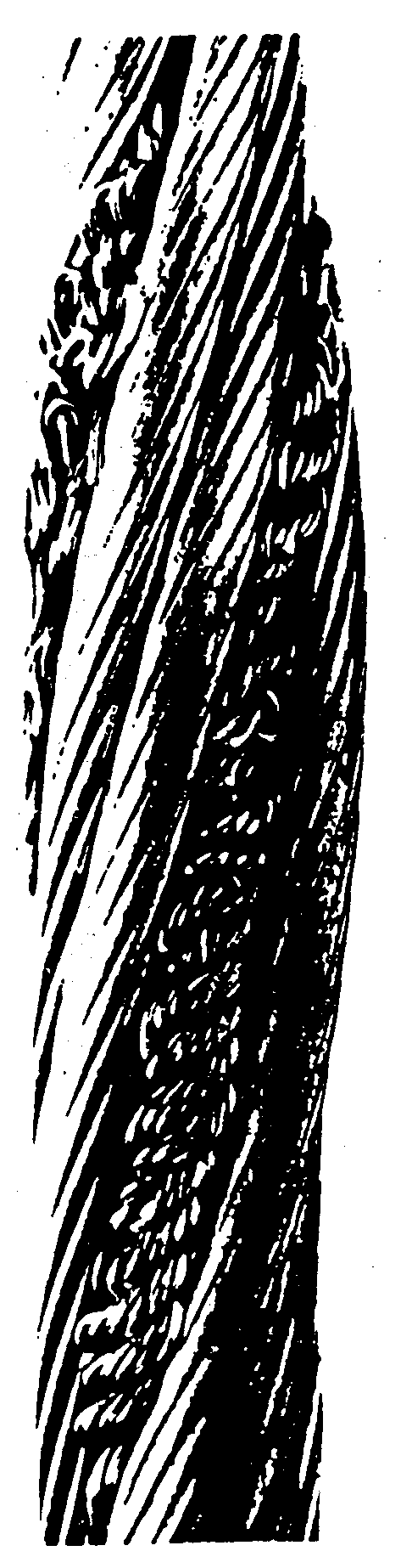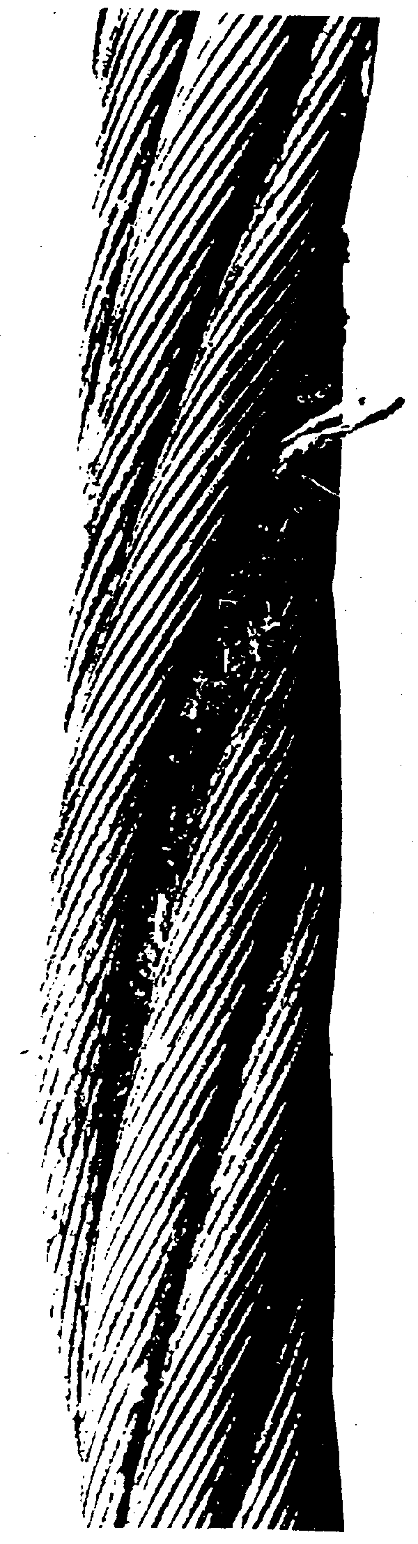 圖E14 鋼絲繩直徑的局部增大:是由于纖維芯在退化狀態(tài)在外層股間突出而引起的——理應報廢