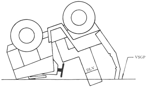 8.5 對于滾桿式ROPS,當試驗處于垂直加載時(見圖5),垂直模擬地平面(VSGP),任何時候均不得進入DLV。
