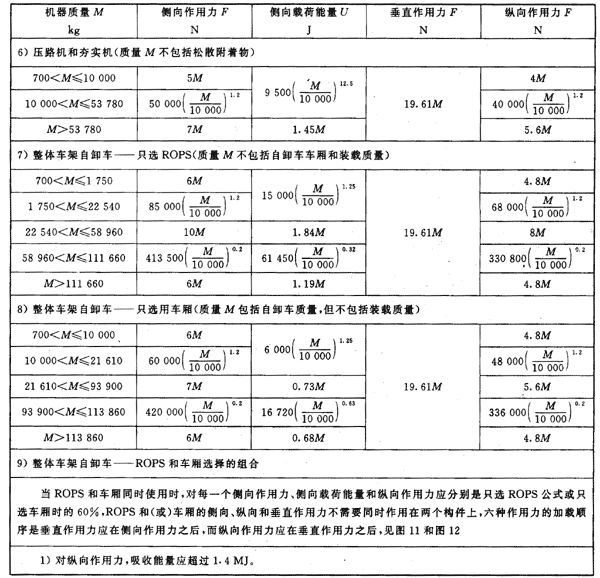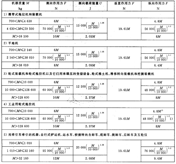 d) ROPS應符合本標準規定的各種機器最大質量M的性能要求;