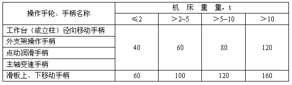 4.7.2 具有手輪、手柄的機床,其操縱力不得超過表2的規定。