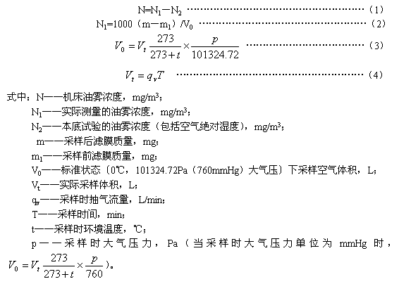 4.4 采樣時,應使機床冷卻系統及其他產生油霧的系統在最大流量下工作,并在機床運轉30min后進行采樣。有吸霧裝置的機床運轉時應使吸霧裝置處于工作狀態。