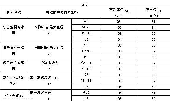3.1 自動鐓鍛機連續空運轉時的噪聲A計權聲功率級LWA和在規定位置的噪聲A計權聲壓級LpA不應大于表1的規定。