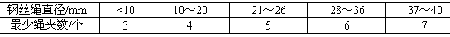 c) 鋼絲繩在一個節距內達到表2中的斷絲數;