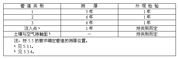表4 對(duì)于沒(méi)有有效陰極保護(hù)的埋地管道的檢驗(yàn)周期