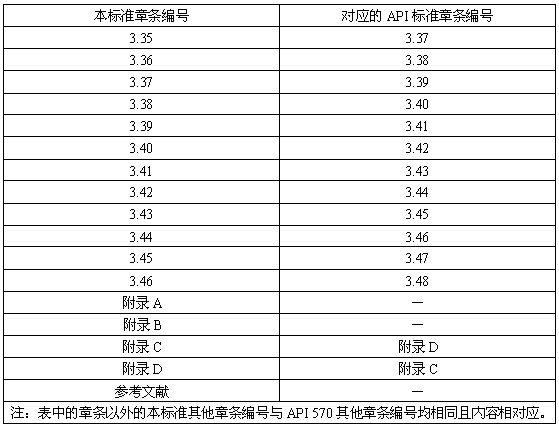 本標(biāo)準(zhǔn)章條編號(hào)與API 570章條編號(hào)對(duì)照