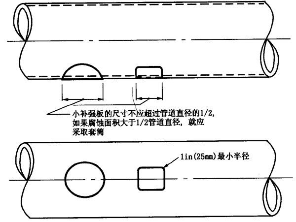 如果檢驗(yàn)中發(fā)現(xiàn)涂蓋層破損或管道腐蝕,應(yīng)對(duì)其余管道進(jìn)行挖掘檢驗(yàn),直到弄清損壞的程度。若平均壁厚小于或等于最小使用厚度,則應(yīng)對(duì)管道進(jìn)行修理或更換。