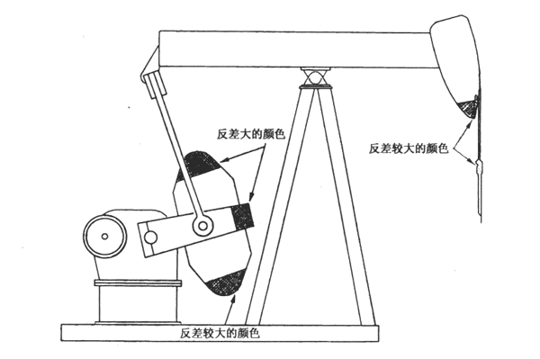 b)顏色標記:應使用鮮明且反差大的色彩,如橙或黃來指明機器或動力設備上有可能造成割傷、壓傷、電擊或其它傷害的危險部件,以強調其危險性。抽油機部件作顏色標記的部位示例見附錄A(提示的附錄)中圖A5。